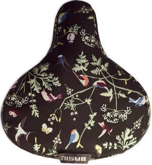 This Basil Wanderlust Charcoal saddle cover is a black cover with a cheerful bird print . It's water-repellent, keeping your saddle dry and protected, even in a light rain shower. This adds a little more comfort to your bike ride home after a busy day at work or shopping.