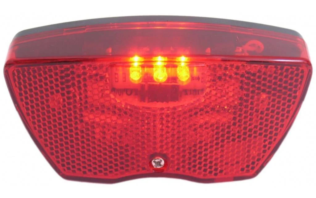The City Carrier Rear Light is a popular bicycle rear light, equipped with three LEDs for mounting on the rear rack. This Edge City carrier rear light comes with two AA batteries .