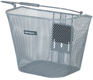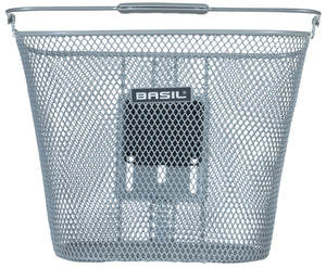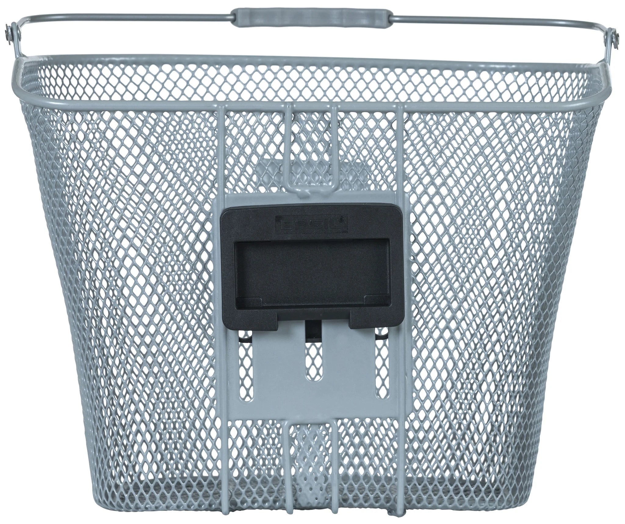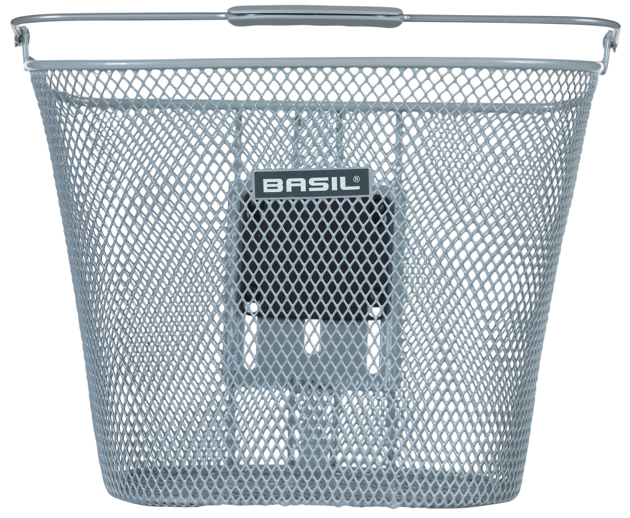 The Basil Bremen KF front basket is a stylish oval bicycle basket made of fine-mesh steel. This silver basket is ideal for both men's and women's bicycles.