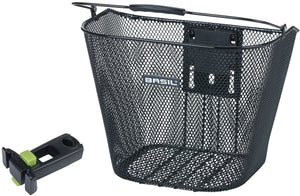 The Basil Bremen is a modern, oval front bicycle basket in black. The basket comes with a complete system.