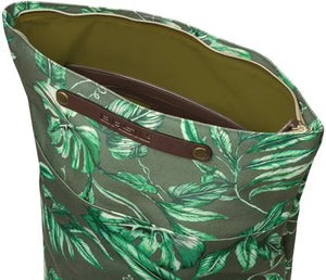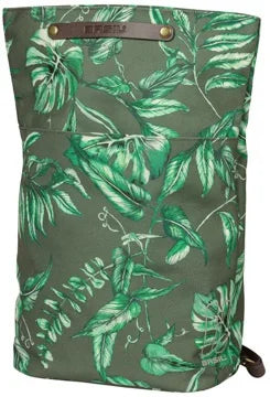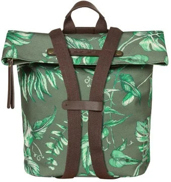 The Basil Ever-Green bike bag is a trendy bike backpack in thyme green. A handbag, shoulder bag, backpack, and pannier all in one! And made from sustainable materials. With the Basil Ever-Green, you're choosing a sustainable and unique bike backpack! The trendy botanical print on the bag is hand-painted by talented Dutch illustrator Meggy Lemmens. And did you know the bag is made from 40% recycled PET plastic? The water-repellent fabric feels like cotton, but contains no fewer than 21 recycled 350 ml plastic bottles. The bag also features vegan leather details and antique bronze finishes. This makes the Basil Ever-Green bike backpack a real statement! This multifunctional bag can be worn in multiple ways. In an instant, you can transform the bag from a bike backpack to a handbag or a shoulder bag. The choice is yours! The green bag easily attaches to your bike rack with the Hook-On system. The bike backpack is designed so that you can neatly hide the hooks behind a zipper. No one will notice your handbag is also being used as a bike bag. The Basil Ever-Green bike backpack in beige has a capacity of 14 to 19 liters. The waterproof folding closure closes with a zipper. Inside, you'll find a zippered pocket. The front of the bag has an additional pocket with a magnetic closure. For better visibility, the bike bag features reflective elements on all sides. Features:
