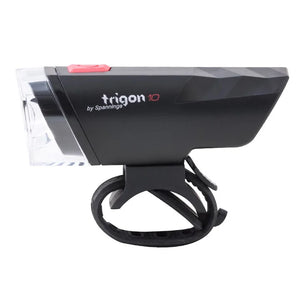Spanninga Trigon 10 Lux Headlamp, Black. The TRIGON 10 is a multifunctional battery-powered headlamp with a unique design. The elegant texture on the end of the TRIGON makes this lamp truly unique. The TRIGON 10 has a high light output (>10 Lux) and a long burn time of 100 hours in flash mode and 15 hours in normal mode. The TRIGON 10 has a compact design and is lightweight. Thanks to the convenient rubber bracket, the TRIGON 10 can be easily mounted on bicycle tubes of any size.