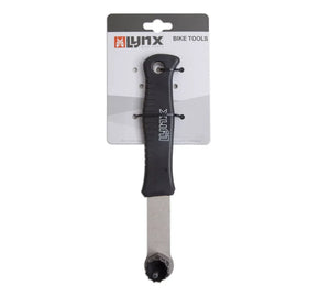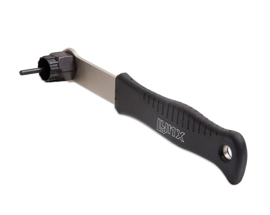 With the Lynx cassette tool, you can easily install and remove Shimano or SRAM cassettes. The tool has a long pin to prevent it from slipping off when applying excessive force while loosening the lockring.