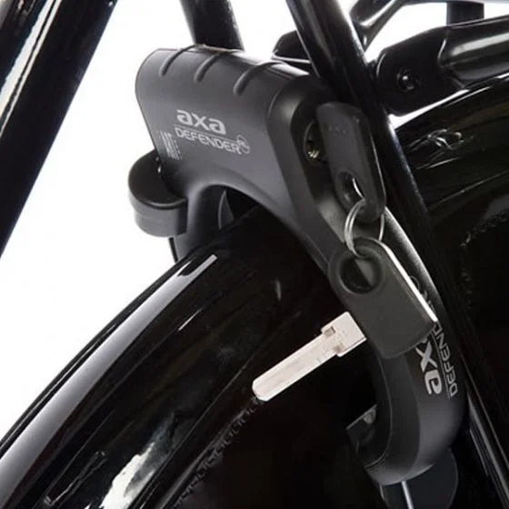 The AXA Defender Matte Black is a high-quality frame lock with an innovative design that allows you to insert a plug-in cable or chain into the side of the lock to connect your bike to a fixed object.
