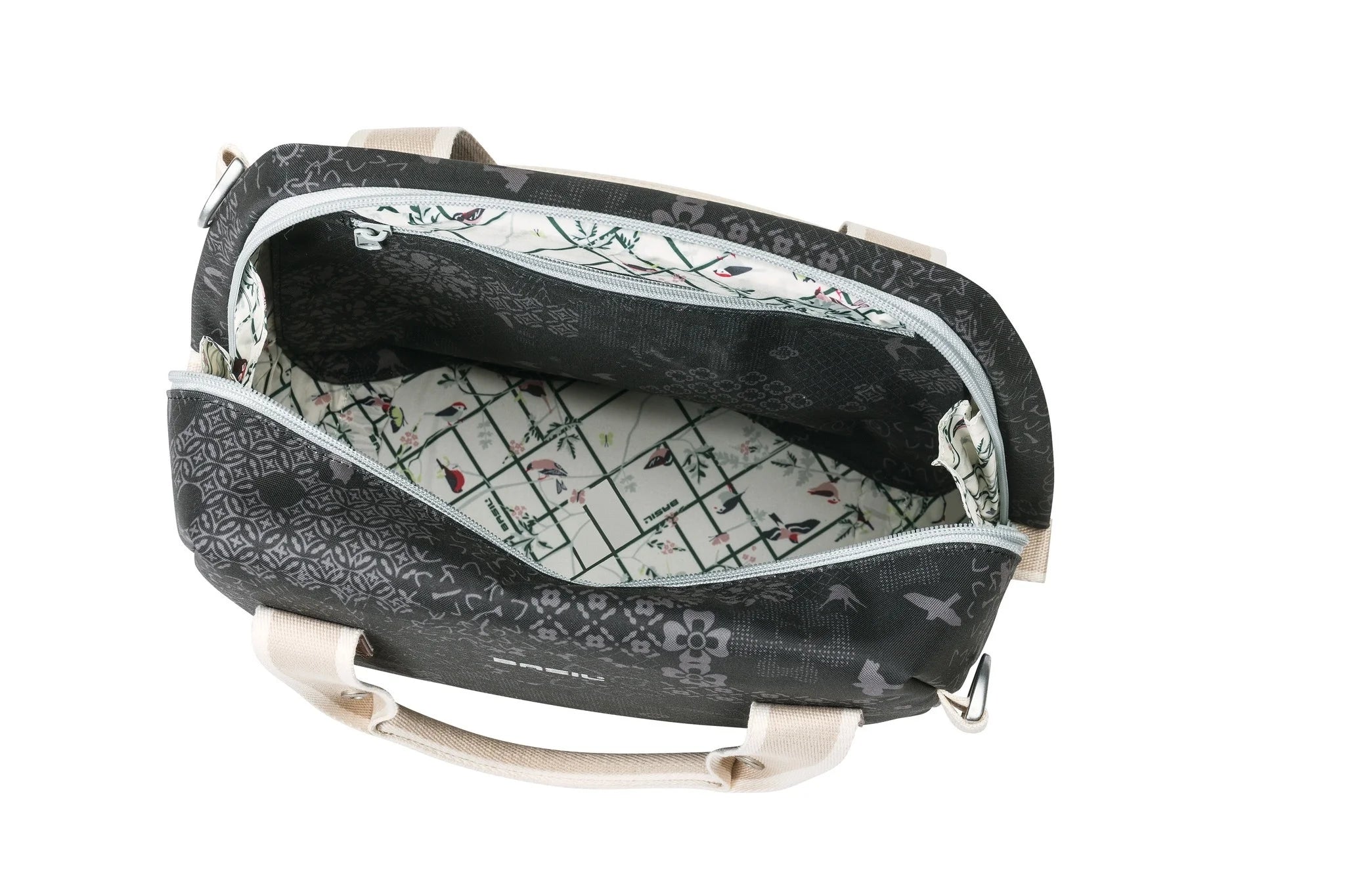 The Basil Bohème City Bag is an elegant black handbag, shoulder bag, and handlebar bag all in one, with a stylish bohemian print. Whether you're out for a bike ride to a café in the city or a day of shopping with a friend, you'll quickly find yourself without this Bohème City Bag.