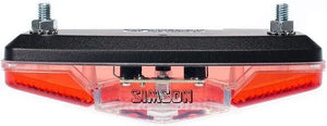 This Simson battery-powered rear light "Coast" is a premium-quality rear light. It's part of the Simson Premium line, which features exceptionally high-quality products. The highly energy-efficient red LED has a burn time of up to 100 hours! This robust rear light with an integrated reflector provides excellent visibility, even at the sides of the bike. It's splash- and rainproof and has 80 mm mounting points. It has an ON/OFF push button. Batteries included: 2 x AAA.