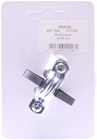 The Simson Ding Dong Large White Bell is a classic, large bicycle bell with an unmistakable Ding Dong sound. The white bell is a whopping 80mm long! This bell fits almost any bicycle and can be mounted with a screwdriver. Product specifications:
