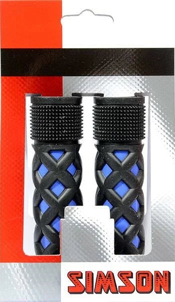 These trendy Simson Children's Grips in cobalt black are universal grips suitable for almost any child's bike. The black rubber diamond pattern provides optimal grip and comfort for children's hands. The grip is adjustable in length, making it suitable for bikes with grip shift gears. Remove the old grip and slide the Simson grip into the desired position.