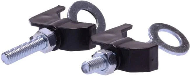 Simson Chain Tensioners Gazelle for easily tensioning a bicycle chain. This chain tensioner is specifically designed for Gazelle bicycles. These chain tensioners are attached to the rear wheel axle with the ring. Then, place the bracket against the chainstay for quick and easy chain tensioning. The chain tensioners are supplied in pairs.