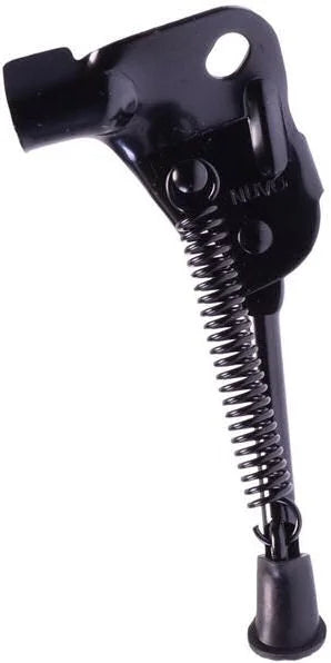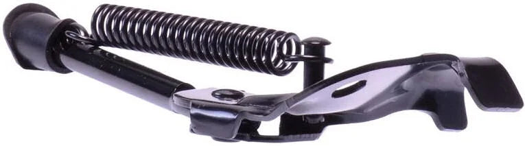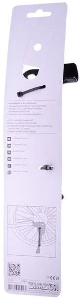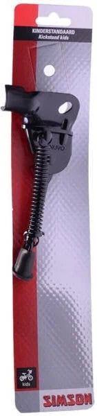 The Simson children's kickstand is suitable for most 12-inch children's bikes and scooters. The plastic base provides extra stability when the bike is on the stand. The black stand is equipped with a spring for easy folding and unfolding. Attach the stand to the rear axle of the bike using an Allen key.