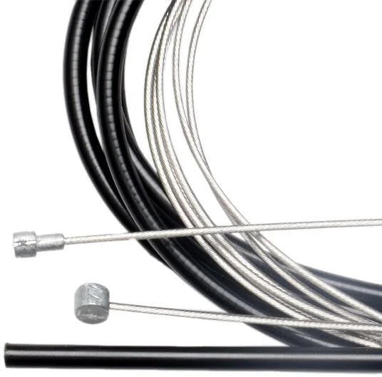 The Simson universal black brake cable set is a complete brake cable set. It consists of a black outer cable and a 1.70-meter galvanized inner cable with a universal barrel and pear nipple. The set includes an Allen key and mounting hardware.