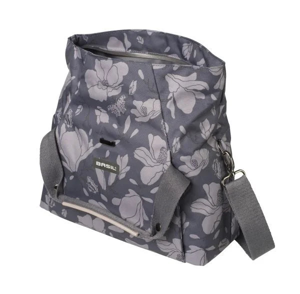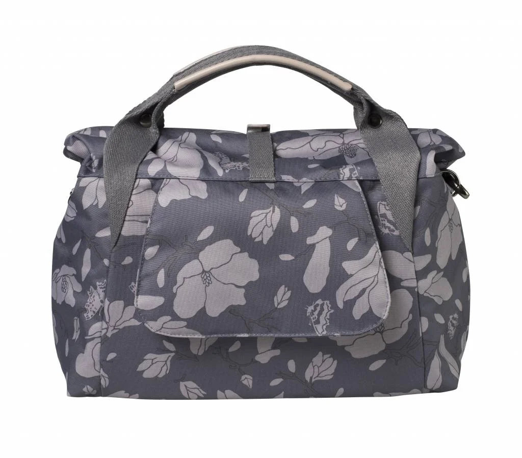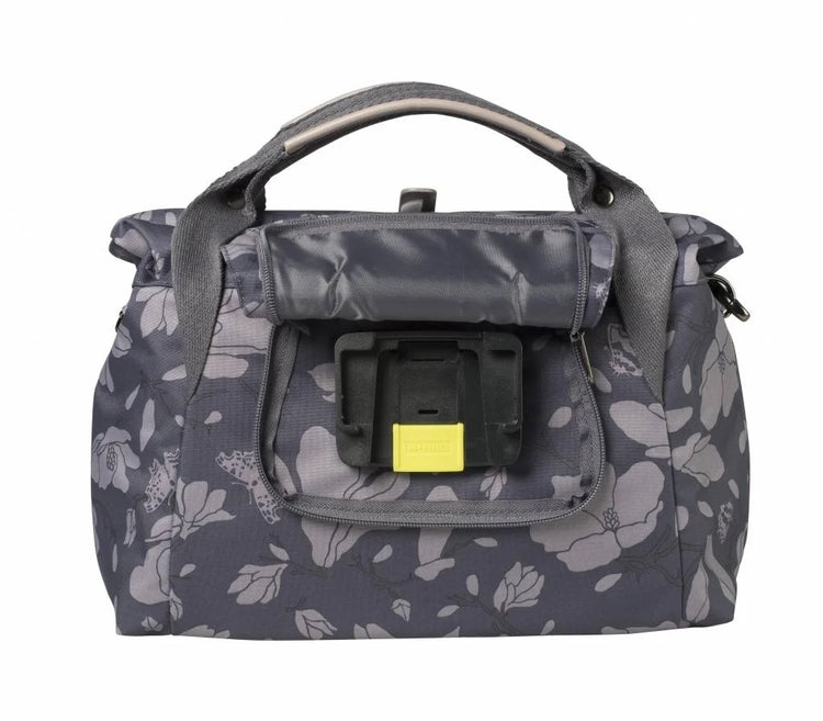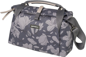 The Basil Magnolia City Bag is an essential cycling accessory that easily attaches to the handlebars of a women's bike. The striking dark gray bag is made of polyester, has a sturdy lining, and is completely waterproof. This is especially handy if it suddenly starts to rain. The handlebar bag has a total capacity of 7 liters and is incredibly handy for storing various cycling items or other equipment. For example, you can easily fit your wallet or a cycling map in it. If you frequently cycle, the Basil Magnolia City will definitely come in handy. It's compact, yet offers plenty of space for your essentials. This way, you don't have to carry a handbag around your shoulders; you're completely free. The bag closes with a folding clasp and zipper. It also features an interior pocket, carrying handles, and a detachable shoulder strap. Ideal if you want to take this bike bag with you. Reflective material is included, so you're always clearly visible. You attach the handlebar bag to a Basil BasEasy system, for example, using the pre-assembled Basil BasEasy/KF adapter plate. This system is not included and must be purchased separately. Would you like to purchase other cycling accessories in addition to this handy Basil handlebar bag? For example, a pannier for your luggage rack or a fun bicycle bell? Check out our other bicycle selection elsewhere on the website. Features:     The Basil Magnolia City Bag is easily removable and waterproof.