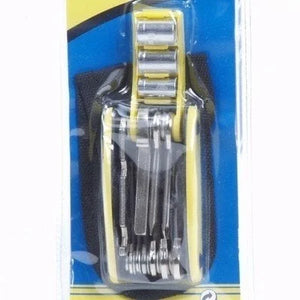 Deze compacte 16-delige fiets reparatieset bevat de meest voorkomende maten inbussleutels, schroevendraaiersleutels en dopsleutels in één houder. De reparatieset wordt geleverd met een tasje, welke handig aan een riem bevestigd kan worden.
