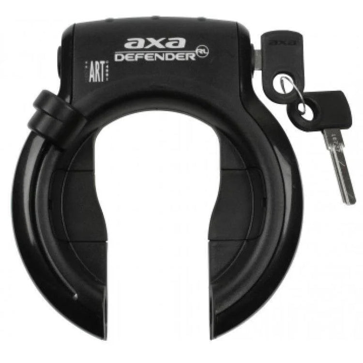 Het AXA Defender RL Ringslot ART** Zwart is een hoogwaardig frameslot met een innovatief design door de mogelijkheid een plug-in kabel of ketting in de zijkant van het slot te steken en zo uw fiets aan een vast object te verbinden. Het Defender ringslot biedt optimale beveiliging door de anti-boor cilinder en de gehard stalen beugel. De ergonomische bedieningsknop en de online sleutelservice bieden u maximaal comfort.