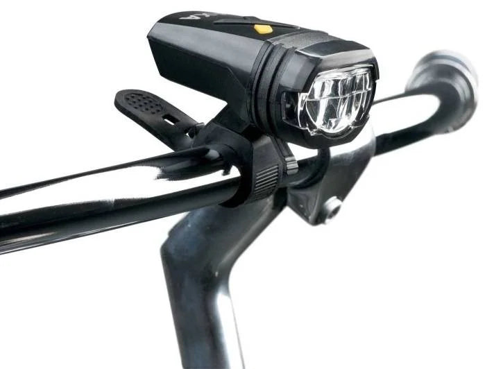 De AXA Greenline Koplamp heeft een compact ontwerp, hoge lichtopbrengst van 50 lux, een groot gebruiksgemak en is bovendien USB-oplaadbaar.