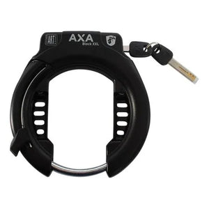 Het slot is met de flexibele bevestigingsset (niet meegeleverd) aan bijna alle achtervorken te monteren, de behuizing past ondanks de omvang optisch goed. De hendel heeft zich door de jaren heen bewezen en bedient de stalen beugel. De cilinder gaat diefstal door openboren tegen. Voor extra bescherming kan het slot gecombineerd worden met de insteekketting Axa ULC-130 om het maximale Axa Safety-Level 15 van 15 te bereiken. Andere AXA RLC-insteekkettingen zijn niet compatibel met het Axa Block XXL ringslot.