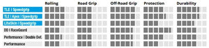 DE RACER. Heeft vleugels door zijn perfecte combinatie van snelheid en grip. Presteert uitstekend als variant aan het achterwiel in combinatie met Rocket Ron. Profieldesign: geringe profieldiepte in het midden van het loopvlak voor hoge snelheid en gering gewicht. Tubeless Easy versie: ADDIX Speed (rood) of ADDIX Speedgrip (blauw). LiteSkin vesie: ADDIX Speed (rood). Met 127 epi Evo-karkas. Specificaties Grootte: ETRTO 57-622 (29 x 2.25 Inch) Type: Vouwbaar Rubbermengsel: Addix Speed Uitvoering: SnakeSkin, TL Easy, E-25 Kleur: Black Skin: Snake Gewicht: 630 gram (22 oz) Bandenspanning: 1.80 - 3.70 Bar (26 - 54 psi) Max. belasting: 120 kg EPI: 67 Profiel: HS425 Binnenbanden: 19, 19A, 19F