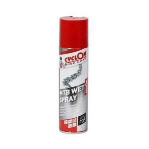 Cyclon MTB Wet Spray - Penetrerend Smeermiddel (250ml) vloeit goed uit tussen de schakels van een ketting en zorgt voor een langdurige, smerende werking voor kettingen die blootgesteld worden aan extreme omstandigheden