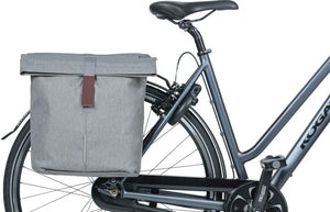 De Basil City is een modieuze dubbele fietstas met genoeg ruimte voor je boodschappen. Uitgevoerd in een mooie grijs gemêleerde kleur en geschikt voor bevestiging achterop je (elektrische) fiets.
