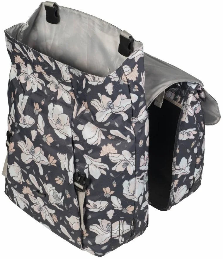 - De Basil Magnolia dubbele fietstas is verkrijgbaar in een donkerblauwe kleur en heeft een totale inhoud van 35 liter.