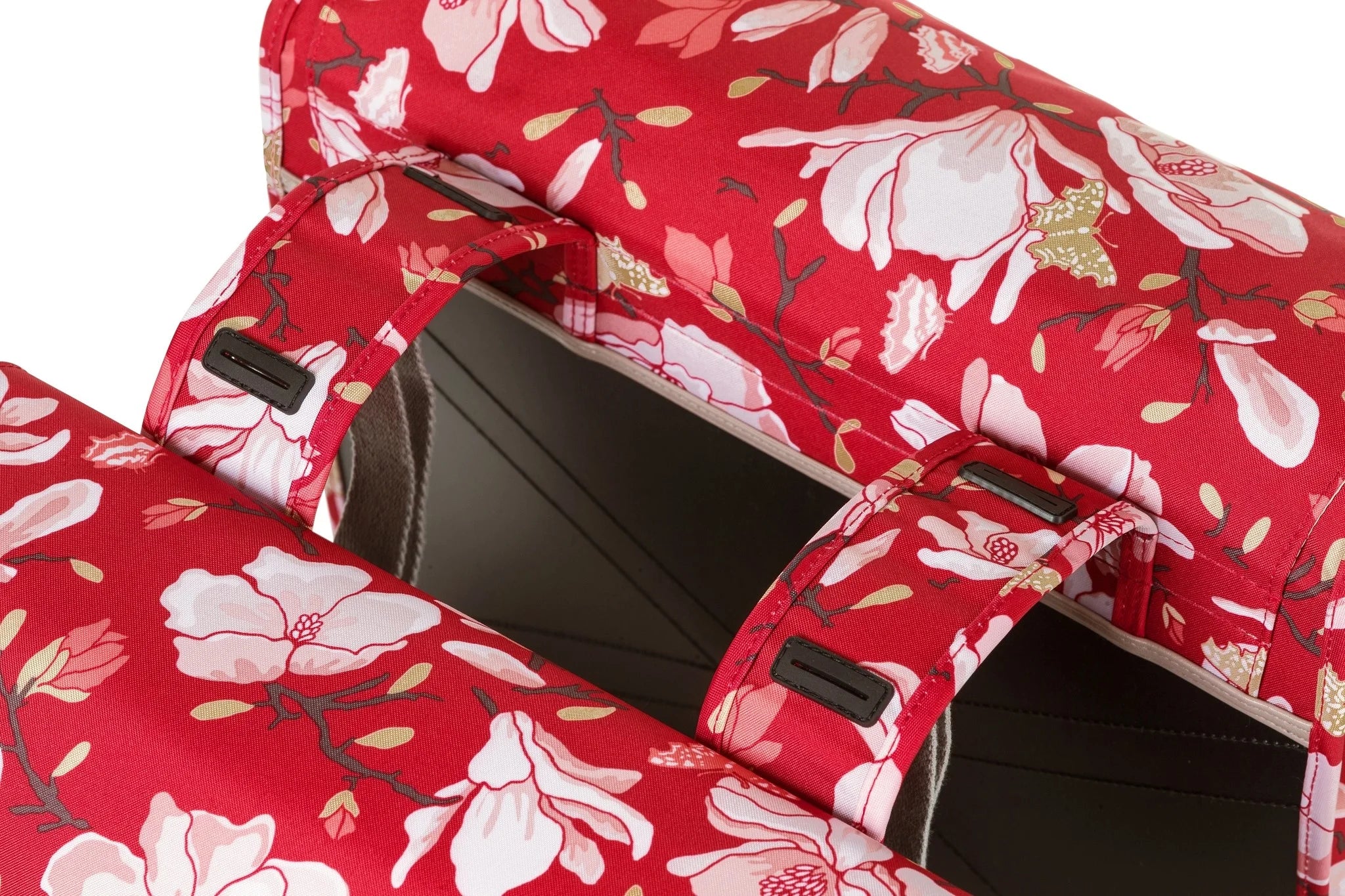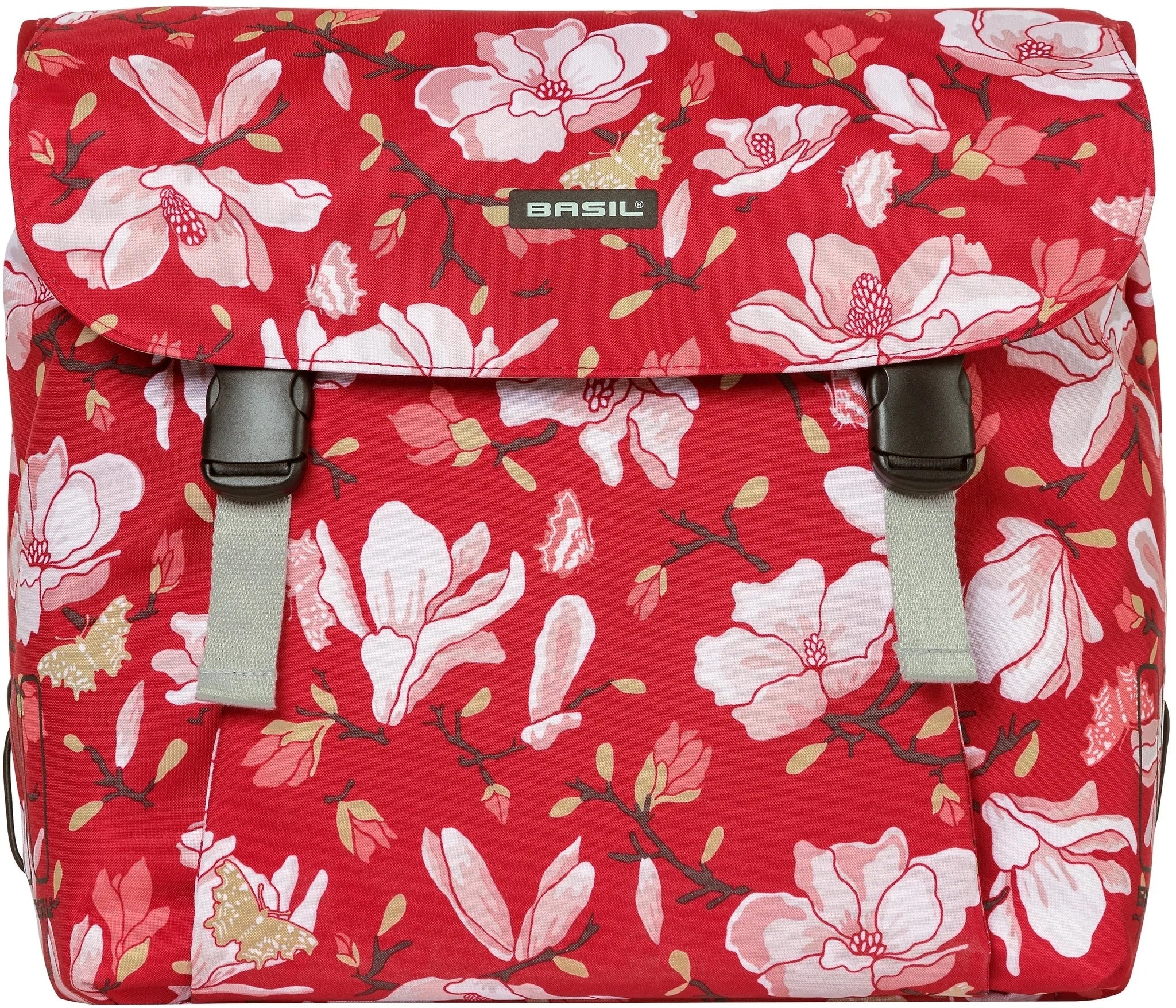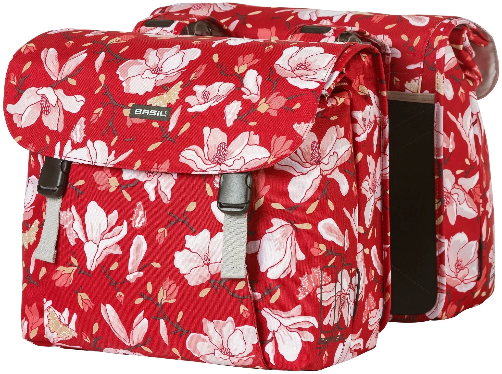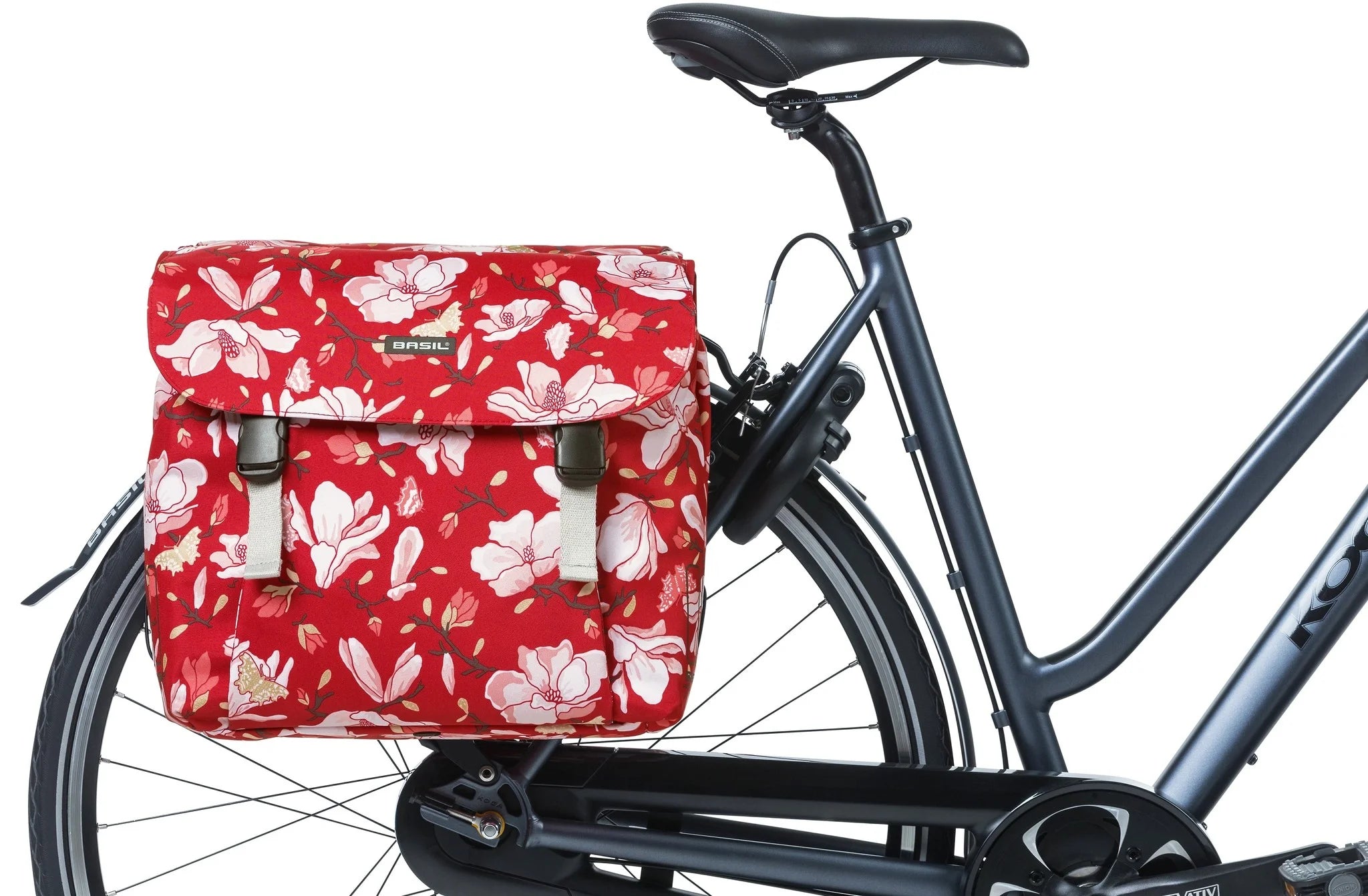 - De Basil Magnolia dubbele fietstas is verkrijgbaar in een rode kleur en heeft een totale inhoud van 35 liter.