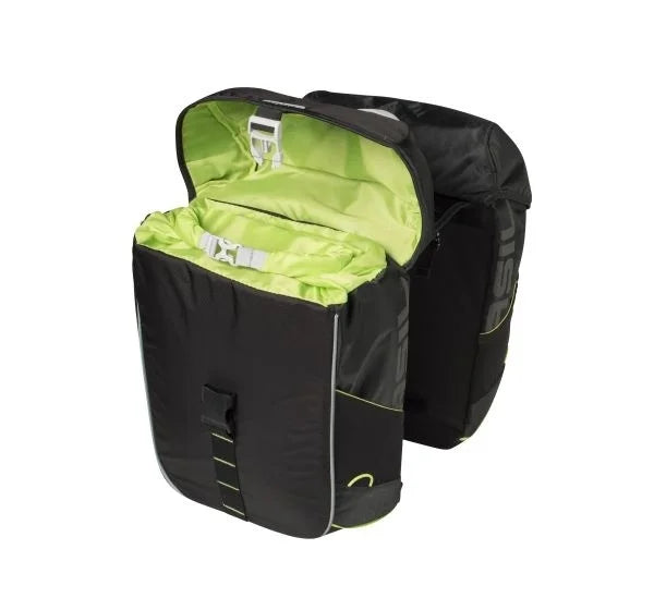 Dubbele fietstas Basil Miles Double Bas 34 Liter - Zwart / Lime