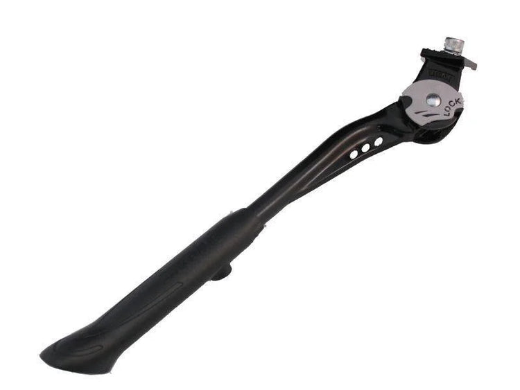 De Edge Lock is een in lengte verstelbaar standaard met een kunststof voet voor extra stabiliteit. De standaard is instelbaar voor 24"- 28" fietsen, heeft een normale brede plaat bevestiging (30 mm) en is met name geschikt voor stads- en hybride fietsen. Monteer de standaard met behulp van een inbussleutel en de bijgeleverde inbusbout op de fiets.