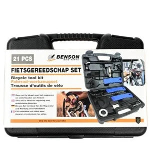 Deze 21-delige gereedschapset is ideaal voor het repareren en onderhouden van uw fiets.