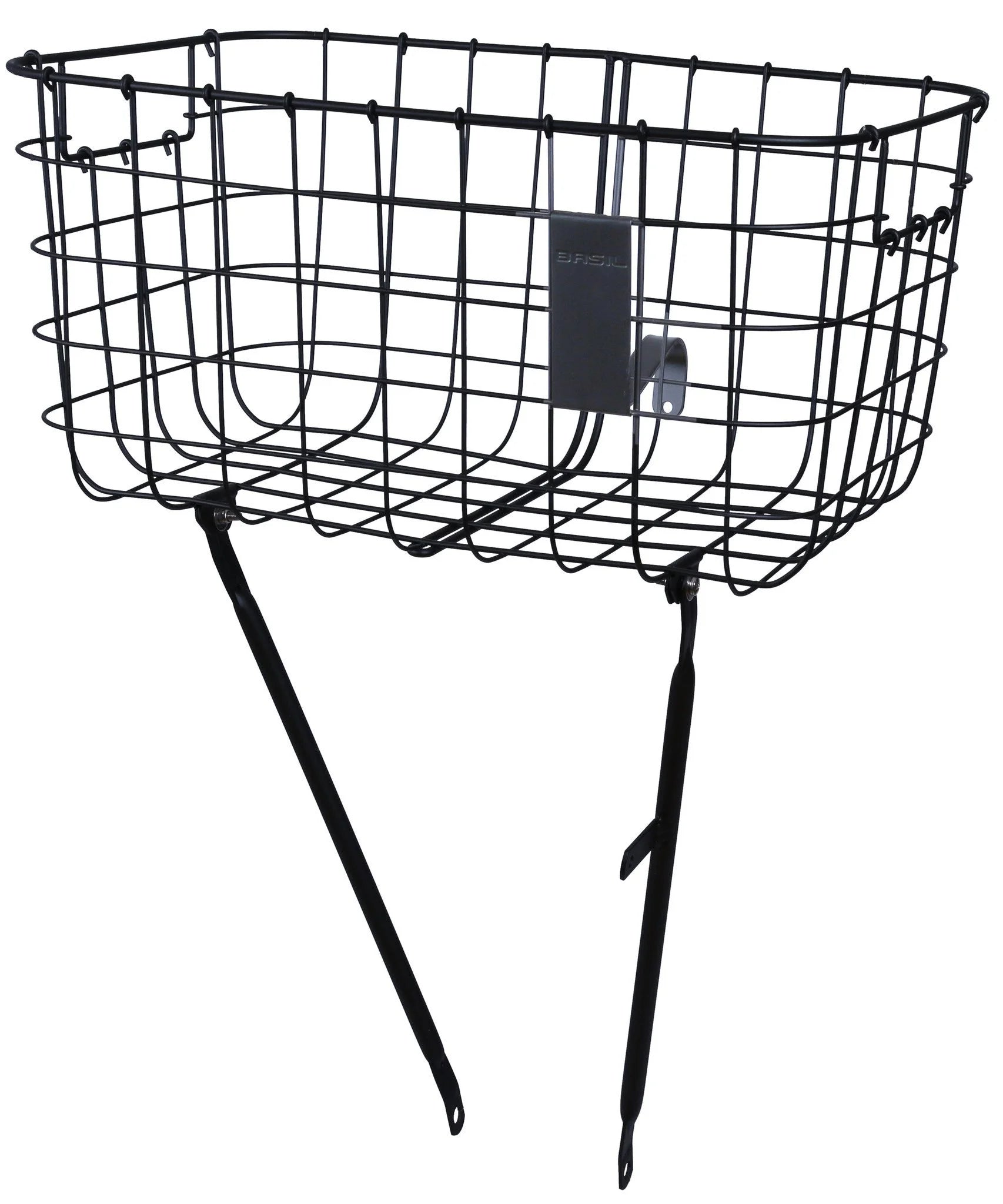 De Basil Robin fietsmand is een trendy zwarte fietsmand geschikt voor permanente montage voorop je fiets met een inhoud van 27 liter en 10kg draagkracht.