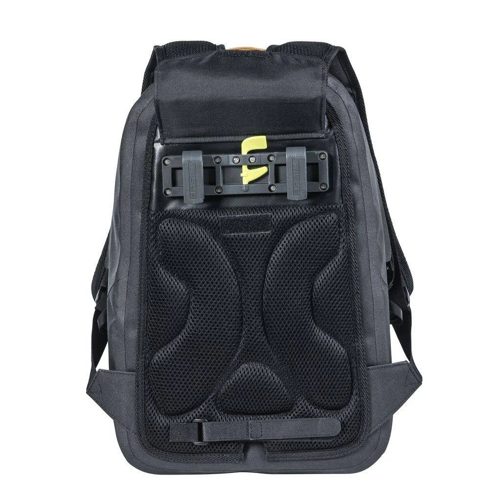 De Basil Urban Dry Backpack is een praktische en waterdichte rugzak voor diverse gebruiksmomenten. Of je nu naar je werk fietst, gaat sporten of een dagje shoppen. Heel handig aan deze tas is dat je m zowel op je rug kan dragen, maar ook aan je bagagedrager kan haken. Dat doe je heel eenvoudig met behulp van het Hook-On systeem. Dit zijn twee haakjes die je aan je bagagedrager klikt. Ook geschikt voor elektrische fietsen!