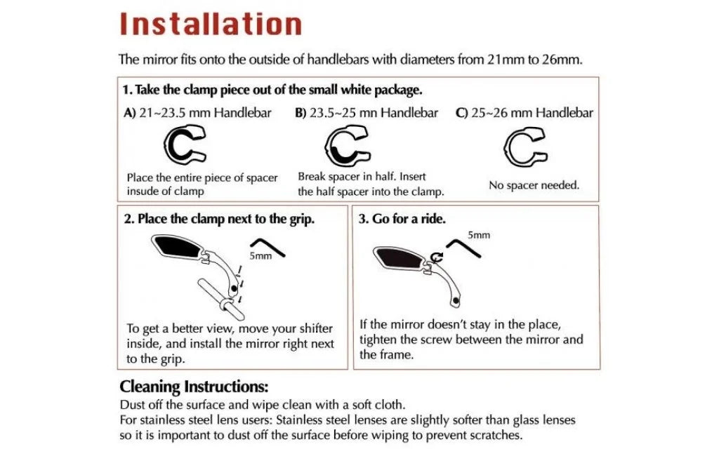 De lens van de Spiegel Luxe Ovaal is gemaakt van zeer sterk veiligheidsglas. De "arm" is gemaakt van vezel versterkt nylon en de stuurklem is gemaakt van aluminium. Hierdoor is de draaibare fietsspiegel zeer licht van gewicht en tegelijk erg sterk en duurzaam. De spiegel is in lengte en hoek verstelbaar en kan worden ingeklapt als de fiets in een fietsenstalling wordt geplaatst. Geschikt voor stuurdiameters tot 26mm.