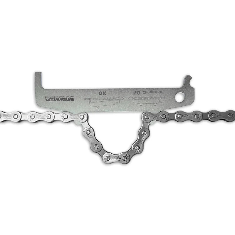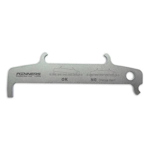 Met deze kettingslijtagemeter van P.Y.C. is eenvoudig af te lezen wat de status is van de fietsketting. De meter heeft een vaste kettingslijtage-indicatorliniaal, welke aangeeft of de huidige toestand van de ketting goed is of dat het tijd is om deze te vervangen.