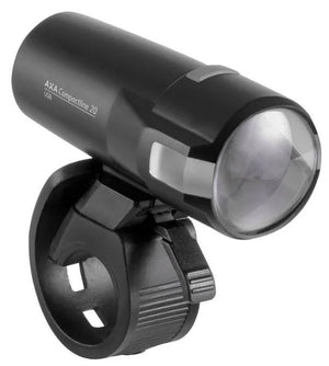 De AXA Compactline kan het beste omschreven worden als klein en fel dankzij de nieuwe dubbele lens technologie. De compacte en sportieve verlichting is USB-oplaadbaar. De Compactline is eenvoudig te bevestigen en makkelijk mee te nemen. Deze verlichting is op vrijwel iedere fiets te plaatsen door de flexibele, rubberen bevestigingsband en kan tegen een stootje. De verlichting is duurzaam oplaadbaar via de bijgeleverde USB-kabel. De accu van de Compactline 20 zorgt voor wel 12 uur fietsplezier met een opgeladen batterij. De batterij is in minder dan 2,5 uur opgeladen. Met een levensduur van 1000 oplaadbeurten biedt de Compactline een duurzaam alternatief voor gewone batterijverlichting. Je bent altijd goed zichtbaar door de krachtige lichtsterkte van 20 lux. De Compactline garandeert de werking bij temperaturen tussen de -10 en +40 C. Ook bij regen en sneeuw. LICHTBUNDEL: 40 meter 'zien', 2500 meter 'gezien worden'.