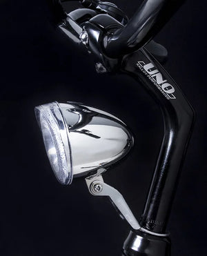 De Swingo Xb chroom is het grote broertje van de Spanninga Trendo en perfect voor retro fietsen! De koplamp heeft een lichtopbrengst van 4 lux en is uitgevoerd met geintregreerde reflector en een aan/uit schakelaar aan de onderzijde. Wordt geleverd incl. 3 x AAA batterijen (batterij aan/uit) op Spanning kaart.