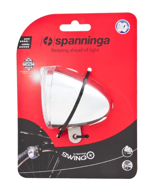 De Swingo XDO chroom is het grote broertje van de Spanninga Trendo en perfect voor retro fietsen! De dynamo koplamp heeft een lichtopbrengst van 20 lux en is uitgevoerd met geïntegreerde reflector en een aan/uit schakelaar aan de onderzijde.