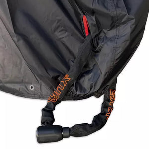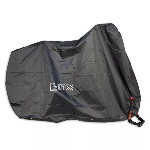 Deze premium fietshoes van Lynx is speciaal ontwikkeld voor het beschermen van fietsen, e-bikes of pedelec. Deze zachte vier seizoenen hoes biedt volledige bescherming tegen Uv-straling, neerslag, wind, corrosie, krassen, stof & vuil. De hoes is waterbestendig, dankzij het waterdichte 210D Oxford polyester materiaal en dubbel gestikte naden. Aan de onderzijde van de fietshoes zit een elastische sluitband en gespsluiting, waardoor deze goed op zijn plek blijft zitten. De tweewieler kan eenvoudig op slot gezet worden nadat de hoes is aangebracht, dankzij de twee gaten in de voorzijde. De fietshoes wordt geleverd in een opberghoes.