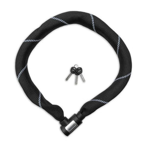 De zachte, maar sterke flexibele mesh hoes voorkomt beschadigingen aan het frame van de fiets. Met een lengte van maar liefst 110 centimeter, perfect voor het vastleggen aan een vast object. Hierdoor is het slot ook uitstekend te gebruiken als tweede slot.