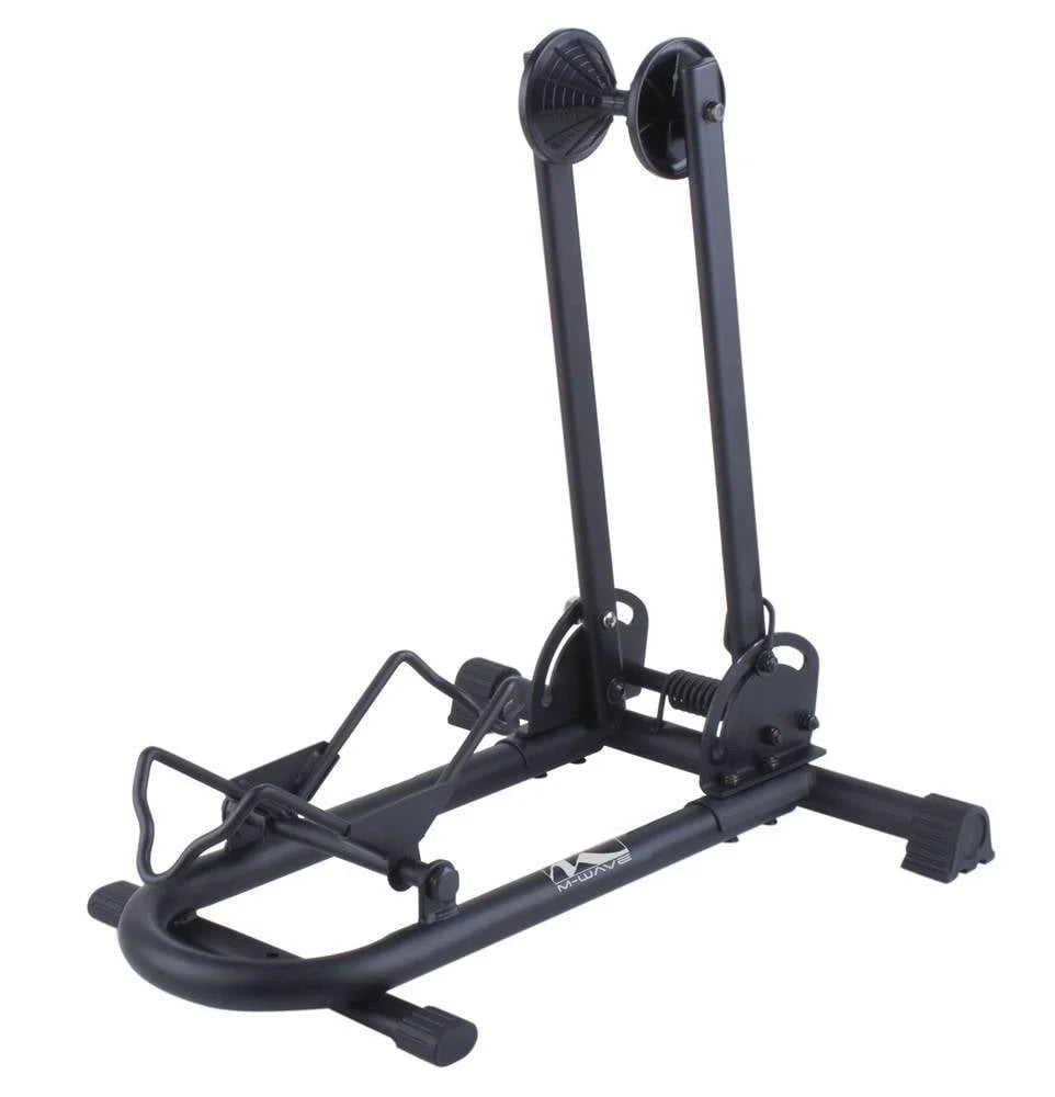 De M-Wave Winkelstandaard Pro Opklap - 20-29 inch is plaatsbesparend, omdat deze inklapbaar is. De fiets kan eenvoudig in de standaard gerold worden.
