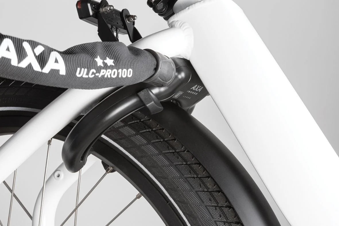 De AXA Imenso is een hoogwaardig frameslot met een innovatief design door de mogelijkheid een UPI plug-in kabel of ULC plug-in ketting in de zijkant van het slot te steken en zo uw fiets aan een vast object te verbinden....