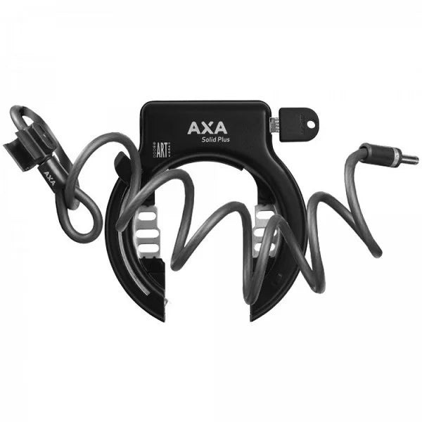 De AXA Solid Plus is een hoogwaardig frameslot met extra brede opening, geleverd met de AXA Newton plug-in kabel van 150 cm om uw fiets aan een vast object te verbinden.