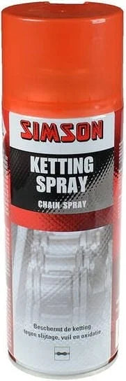 De Simson Ketting Spray smeert en beschermt de ketting tegen slijtage en oxidatie door werkstoffen met hoge smeerwerking. Houdt O-ringen soepel bij temperatuurwisselingen en beschermtzo tegen water en vuil. De Simson Ketting Spray wordt geleverd in een 400ml spuitbus met een extra rietje om de spray eenvoudig op de gewenste plaats aan te brengen.