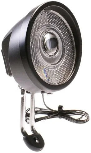 De witte LED heeft een lichtopbrengst van 7 Lux. Deze koplamp heeft een optische reflector en een overspanningsbeveiliging. Geschikt voor een 6 Volt dynamo.