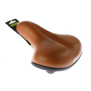 Het Mirge Comfort Zadel Bruin is uitgerust met elastomeer-schokdempers. Deze zijn voorzien van bescherming voor kindervingers.