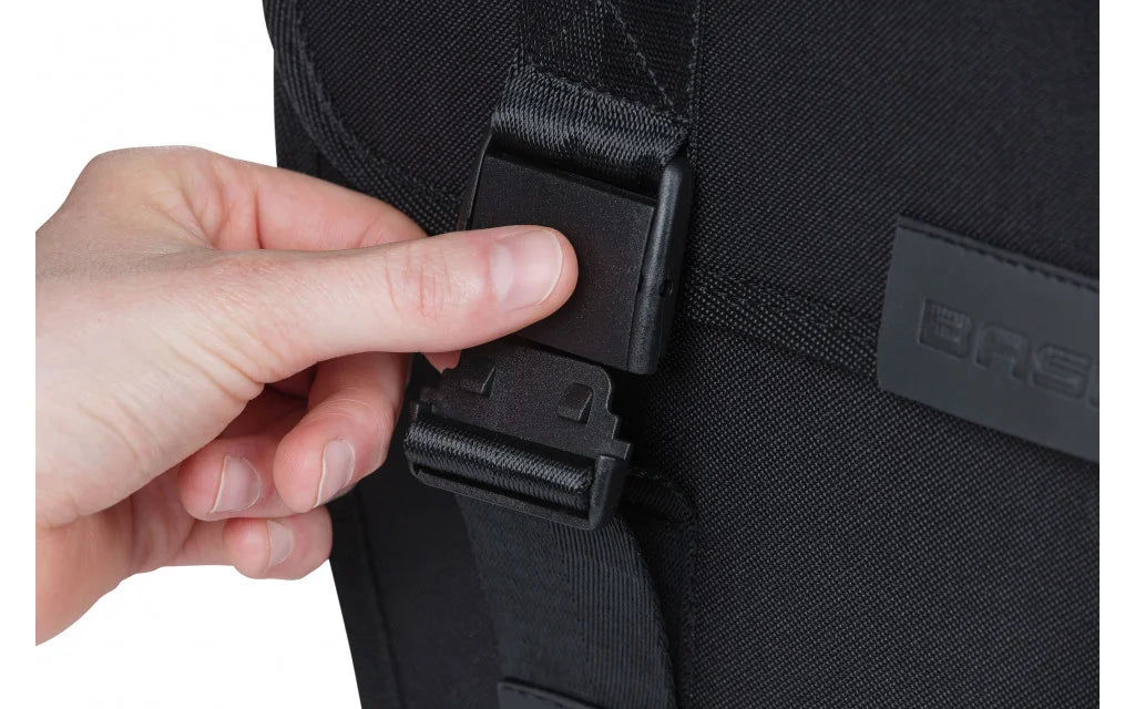 Met het Universal Bridge systeem bevestig je de tassen aan je fiets. Het bevestigen kan met de voorgemonteerde riempjes. Of in combinatie met het Basil DBS systeem (afneembare bagagedragerplaten) of een adapterplaat zoals MIK. Beide systemen dien je apart aan te schaffen. Heb je veel en zwaardere spullen in je tas? Dan kun je de tas combineren met de Basil Afstandhouder (apart verkrijgbaar). Deze houder voorkomt dat de tas in de spaken van je fiets komt.