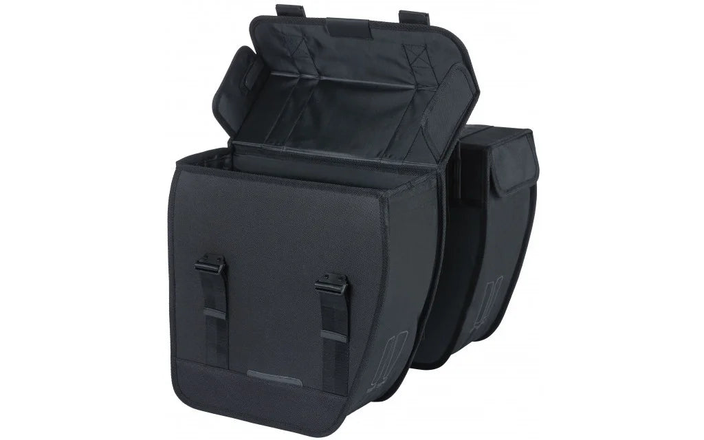 Op zoek naar een dubbele fietstas met genoeg ruimte voor je dagelijkse boodschappen of spullen voor een dagtocht? De Basil Tour dubbele fietstas is een luxe fietstas met een inhoud van 28 liter. De tas heeft regenoren, waardoor er geen water in de tas sijpelt. De tas is gemaakt van waterafstotend 600D en is vormvast. Kenmerkend aan de tas is de afronding aan de voorzijde. Zo voorkom je dat je tijdens het fietsen met je hak tegen de tas komt. De tas heeft kliksluitingen die makkelijk te openen zijn. Je hoeft op deze manier geen kracht te zetten om de tas te openen.