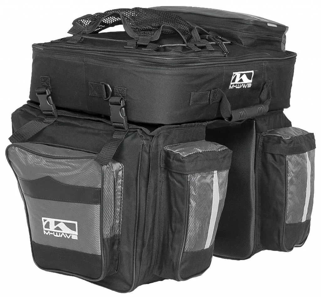 De Triple M-Wave Amsterdam Fietstassen zijn gemaakt van weerbestendig nylon. Het bovengedeelte van de fietstas kan ook als rugzak of schoudertas gebruikt worden. Met een totale inhoud van 62 liter biedt de Triple M-Wave Amsterdam veel ruimte!