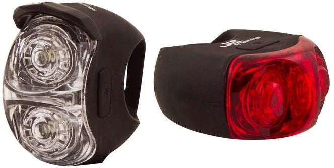 De siliconen JET koplampen en achterlichten, zowel krachtig als compact, zijn een prima aankoop en een waarborg voor optimale veiligheid. Oplaadbaar met een micro-USB stekker (kabel bijgeleverd) is de JET ook nog eens milieuvriendelijk. Superhandig JET lampen kunnen makkelijk op uw fiets bevestigd worden met hun flexibele en compacte montagesysteem. De grote schakelaars zijn makkelijk te bedienen (zelfs met handschoenen). Trendy JET lampen hebben een speciaal systeem met een indicator die aangeeft wanneer het vermogen van de oplaadbare batterij laag is. Als de indicator knippert, kun je de lamp eenvoudigweg opladen op je laptop, zodat je hem na een paar uur weer kunt gebruiken. Lichtbron: 2 witte LED's > 20 Lumen Stroomvoorziening: Li-Po oplaadbare batterij via USB Levensduur batterij: > 8u / 30u (flash) Deense regelgeving : > 15u / 94u (flash) Batterij-laag indicator: nee Functies: Continu / Flash Gewicht: <37g